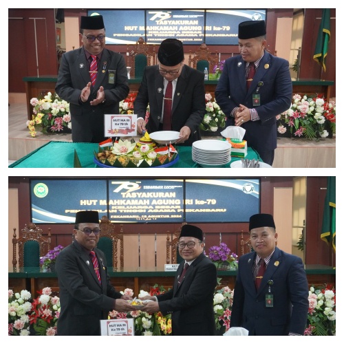 Acara ditutup dengan pemotongan tumpeng oleh Ketua PTA Pekanbaru. Selamat Hari Ulang Tahun Mahkamah Agung yag ke-79. MARI Terus Tingkatkan Integritas dan Dedikasi dalam Pelayanan Hukum demi Mewujudkan Peradilan yang Tangguh dan Berkeadilan. Peradilan Tanggung, Indonesia Maju.