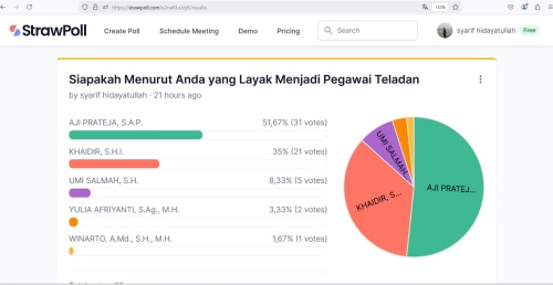 - Pegawai teladan terpilih Aji Prateja, S.Ap di urutan pertama.