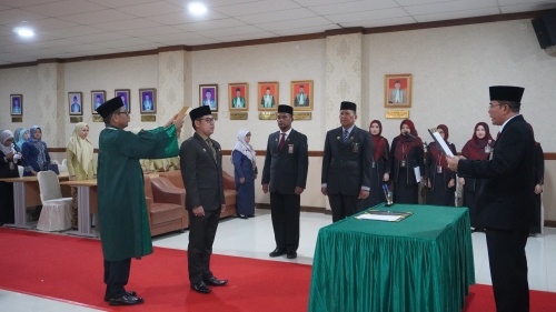 Pekanbaru, 17 September 2025, Ketua Pengadilan Tinggi Agama Pekanbaru, Dr. H. M. Sutomo, S.H., M.H., secara resmi mengambil sumpah dan melantik Amirrizal, S.H.I. sebagai Kepala Subbagian Tata Usaha dan Rumah Tangga PTA Pekanbaru. Amirrizal, S.H.I. sebelumnya menjabat sebagai Kepala Subbagian Umum dan Keuangan pada Pengadilan Agama Ujung Tanjung Kelas IB. Acara ini dilaksanakan di Aula PTA Pekanbaru dan dihadiri oleh personil PTA Pekanbaru dan tamu undangan.