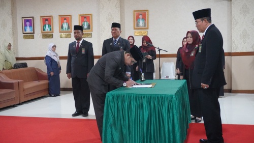 Acara pelantikan ditutup dengan pemberian ucapan selamat dari seluruh tamu undangan kepada pejabat yang baru dilantik serta sesi foto bersama.